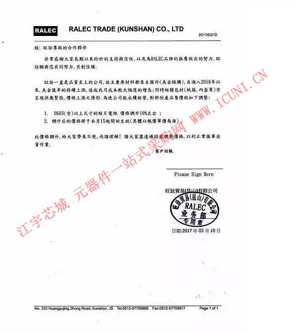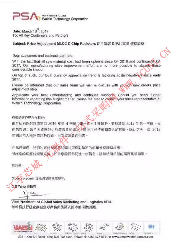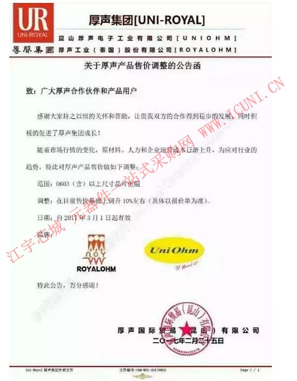 不僅如此,旺詮、厚聲兩大原廠也因原材料成本攀升、匯率影響發(fā)布漲價公告。
